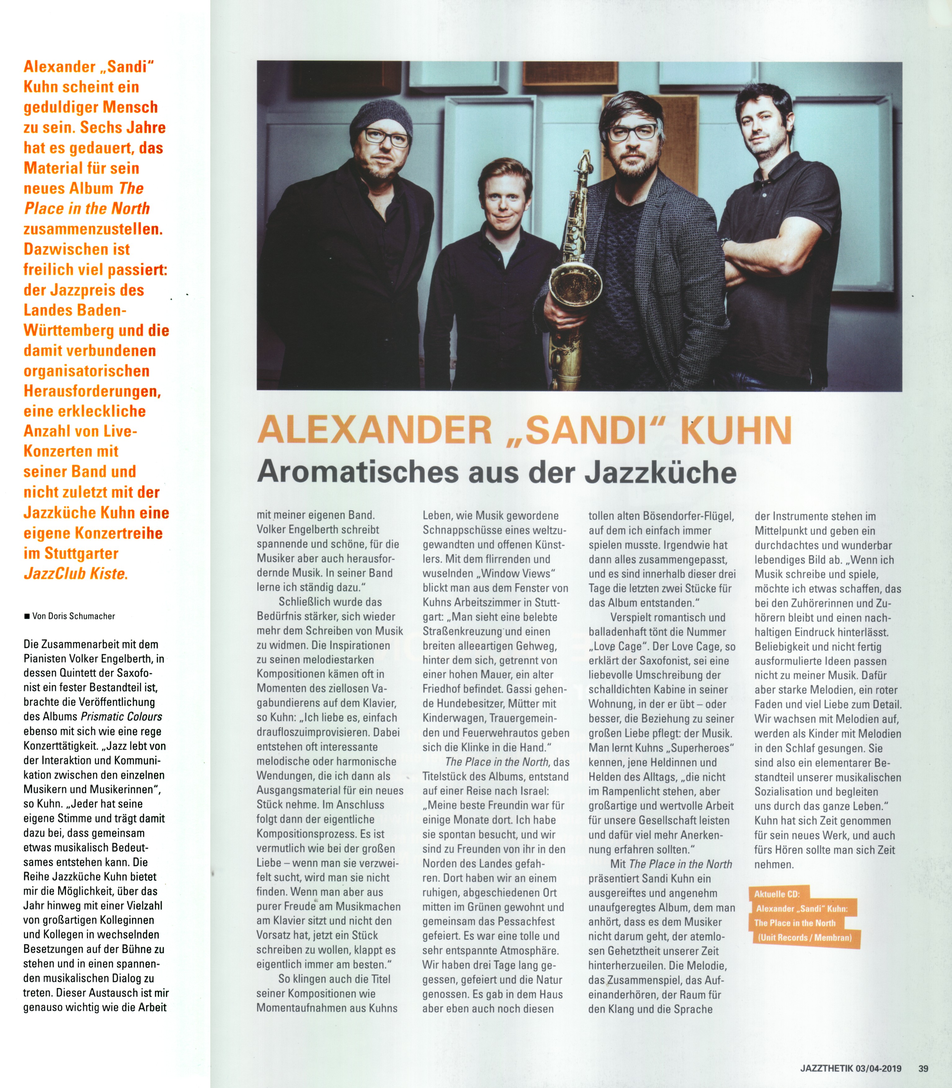 „“The Place In The North" bietet kompositorische Perfektion und hörbar blindes Verständnis unter den beteiligten Musikern in einem traditionellen Jazz-Kontext, der großes Interesse außerhalb eines elitären Kreises wecken kann, falls "Sandi" Kuhn es darauf anlegt … was er tun sollte, denn große Songs, wie sie dieses Album teilweise enthält, müssen gehört werden.“